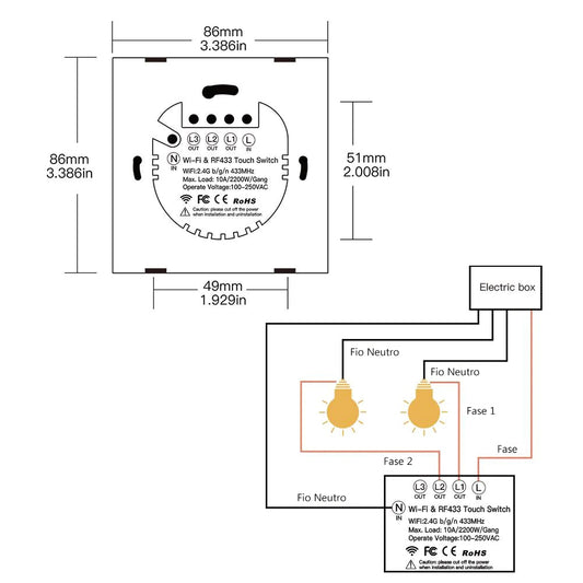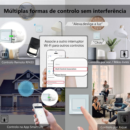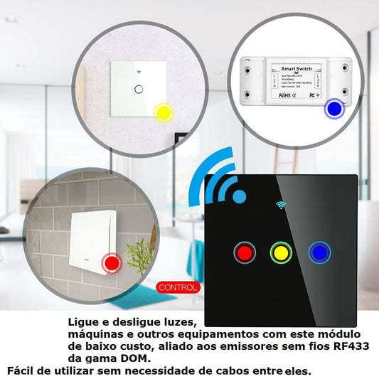 Interruptor de Parede Touch Vidro Wi-Fi+RF433 DO3