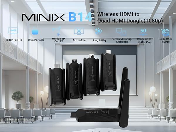 Minix B14 - Kit de transmissão wireless HDMI 1080p (1x TX + 4x RX) até 50m